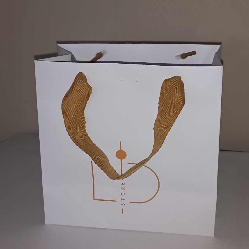 SACOLA DE PAPAEL 180g/m² - A15,5 X L15,5 X P8cm - Alça Gorgurão e Ilhós